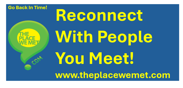 But, for reconnections to take place, it's VITAL that the person you are trying to reconnect with knows about THE PLACE WE MET. If everybody shares on social media, word will spread QUICKLY, and you will reconnect. Please click on the link below and share one of the images from that page. Share often!